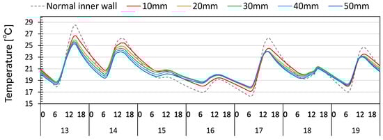 4.4. Difference Caused by the Thickness of the Heat-Storage Wall