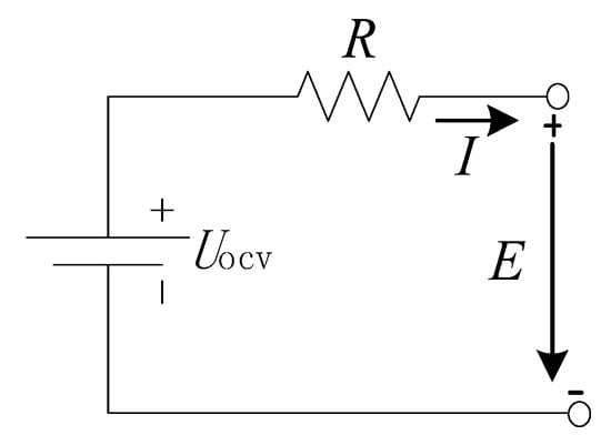 where: E is the battery terminal voltage, UOCV is the battery open circuit voltage, R is the battery internal resistance, and I is the current, whose direction is from positive to negative.