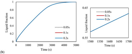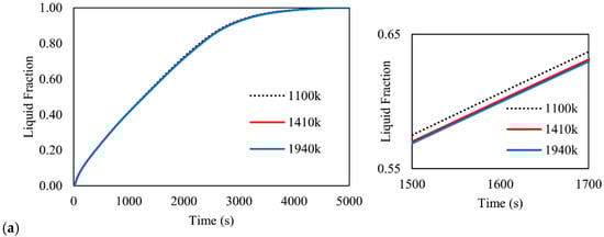 | Q (J) | Capacity of heat storage | μ (kgm−1s−1)ρ (kgm−3) | Liquid fraction |