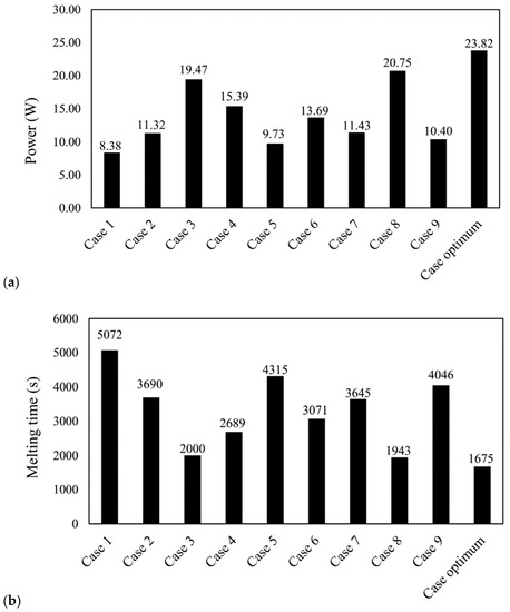 | Case | Pitch | Nfin | tfin (mm) | Hfin (mm) | PCM Mass (kg) | Melting Time (s) | Power (W) | SNR |