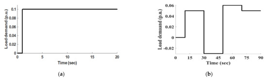 Load demand pattern (a) 10% step increase in load demand and (b) Random load demand.