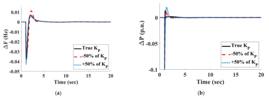 Sensitivity analysis of the HPSREG with the “PID-With-VI-FO-F-PID” configuration during ±50% changes in : (a) and (b) .