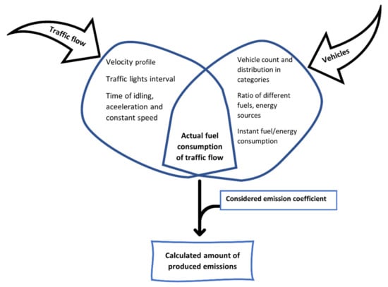 In regard to further potential research activities, additional and more comprehensive knowledge on the behavior of vehicles in front of traffic lights and when driving through intersections could be introduced into the model, which would show even higher CO2 production, and thereby prove the significance of modifications, innovations, and optimizations of traffic management, as well as investment in transport infrastructure in cities.