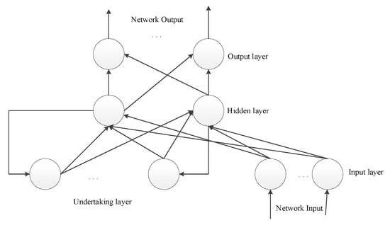 The Elman neural network is a multilayer feedforward neural network and is based on the BP neural network and negative feedback system. BP neural networks generally have an input layer, several hidden layers, and an output layer. In addition, the Elman neural network adds an undertaking layer. Compared with BP neural networks, the Elman neural network has better stability and is better at classifying the original data. The model structure is shown in Figure 9 [24].