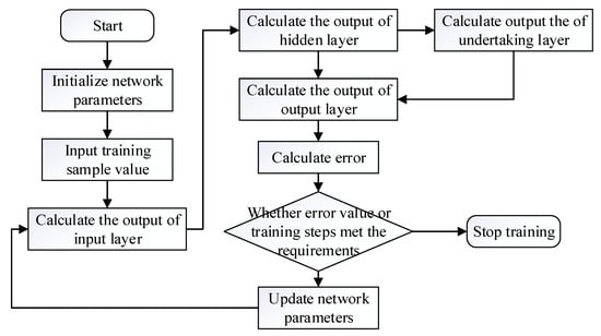 Equations (2) and (3) are the calculation expressions of the output values of the hidden layer and input layer of an Elman network, respectively. w(1) the is weight matrix connecting the hidden layer and the input layer, and w(2) is the weight matrix connecting the undertaking layer and the hidden layer. b(h) is the hidden neuron bias vector, and t is the sampling time. xt is the output of hidden layer. is feedback data.