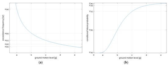 The quantification of seismic risks involves the convolution of hazard and fragility curves, as shown in Equation (1) [9,10,11]: