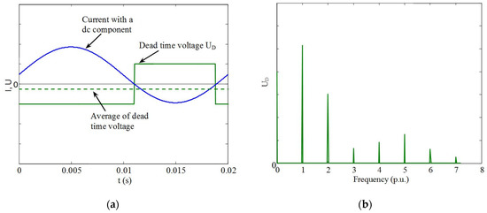 Dead time voltage in a presence of a DC component in a phase current: (a) time course; (b) spectrum [1].