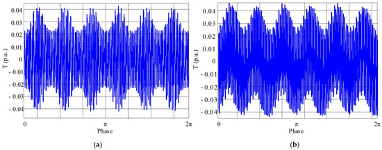 Simulated torque of pulse-width modulated voltage-source inverter (PWM-VSI)-fed induction machine: (a) unsaturated; (b) at the “knee” of the magnetization characteristic [6].