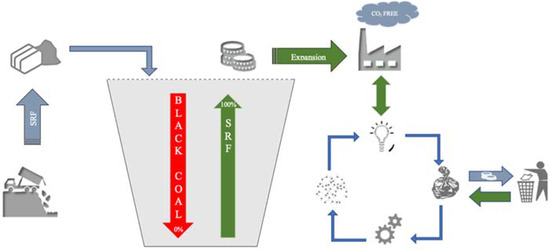 If it is decided in the future that the Vojany black coal power plant will fully implement solid recovered fuel for electricity generation, fuel supplies must be at a constant level. If the power plant invests in the reconstruction needed for efficient waste incineration, it will certainly need long-term and reliable suppliers. It will, therefore, also be in the interest of the plant for cities and municipalities to expand the construction of sewers, wastewater treatment plants and waste collection and sorting facilities as much as possible. All of these activities will not only help the Vojany power plant to provide enough recovered fuel, it will also have a positive effect on the environment. The reason is the replacement of black coal by biofuels. This solution (Figure 5) would bring much-needed new jobs to the Zemplín region. Therefore, it is necessary to decide on suppliers who can deliver the necessary quantities. The possible future use of solid recovered fuel at the Vojany black coal power plant also brings suitable business opportunities, because waste is produced throughout Slovakia.