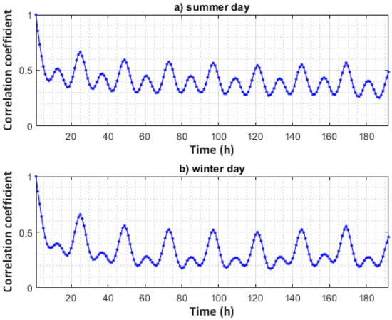 Correlation coefficient curves for (a) summer day and (b) winter day.