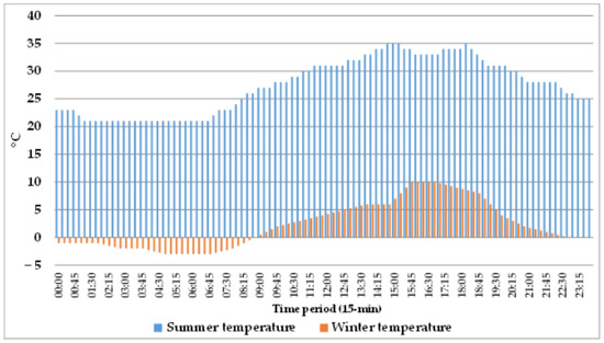 Table 13 summarizes the evolution of the inside house (AC), refrigerator, and water heater’s temperatures during the whole summer day. The most striking difference with the winter day is the noticeable increase in the inside home temperature, ranging from 0.4 °C at 00:00 to 4 °C at 14:00.