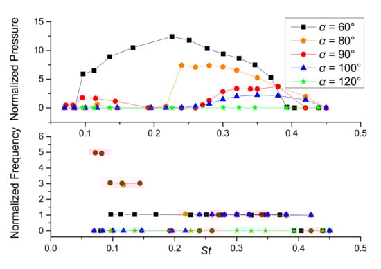 - Ziada, S.; Shine, S. Strouhal numbers of flow-excited acoustic resonance of closed side branches. J. Fluids Struct. 1999, 13, 127–142. [Google Scholar] [CrossRef]