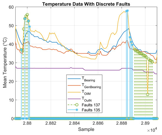 Measured temperatures and associated discrete faults.