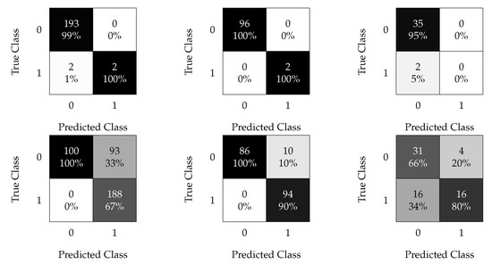In terms of execution time, as summarized in Table 15, the main disadvantage of the ensemble methods (e.g., RUSBoost algorithm) is the heavy computational burden; hence, they are slower than other algorithms (even when other methods use reshaped and oversampled data). The RUSBoost algorithm has a high degree of variability in terms of execution time. For example, with time windows of 30 min, 1 h, and 3 h, the training times are s, s, and s, respectively.