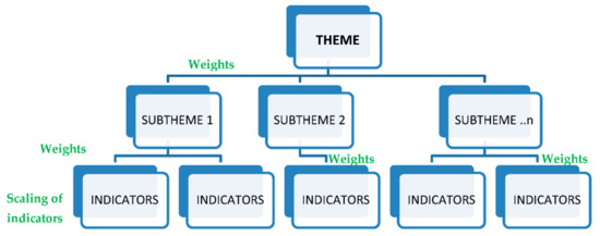 - A set of weights was applied in order to assess the contributions of certain detailed indicators to certain subthemes of sustainability assessment (weights are presented in Table A2 in Appendix A);