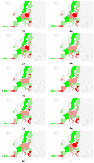 4.3. Assessing Individual EU27 Countries in Terms of Their Energy and Climate Sustainability between 2009–2018