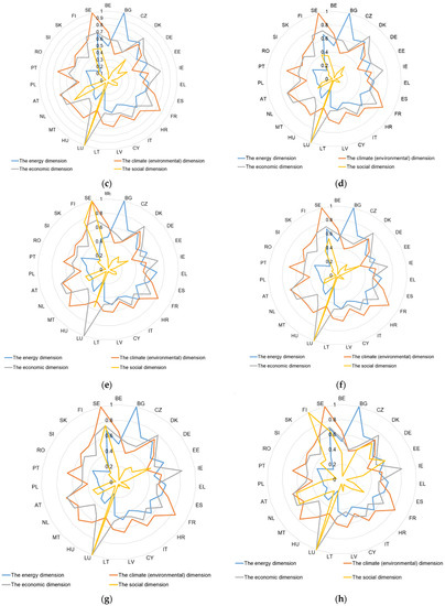 4.2.2. Assessing the EU Sustainability in the Energy, Climate (Environmental), Economic, and Social Dimensions.