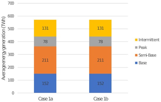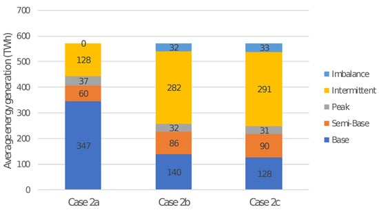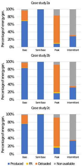 - Semi-base gas plants are completely replaced by intermittent renewables (specifically offshore wind) and nuclear, with nuclear units having a minimum stable factor of 55% (Case 2b). The nuclear share in this case is 20% of average generation.