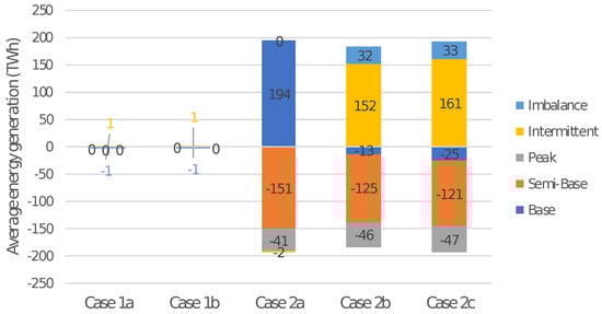 Comparison of energy generation breakdown between cases relative to the base case (Case 0).