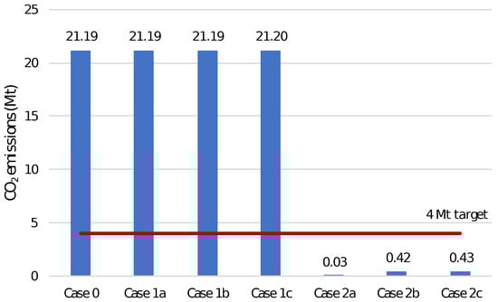 Note that, in this scenario, the CO2 emissions are significantly reduced to 21 Mt by comparison to 105 Mt in 2017 [47]. This value is still five times higher than the 4 Mt target set by Reference [47] in the UK pathways analysis, which could also be explained by the absence of Carbon Capture and Storage (CCS) in the assumptions surrounding the scenario investigated here.