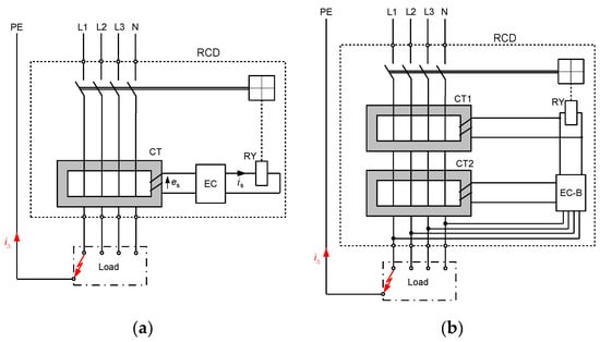 With reference to the improvement of the construction of RCDs (from the point of view of the high frequency), special attention should be given to the current transformer CT of the RCD, its relay RY, and the optional electronic matching system EC (Figure 2). Parameters of the aforementioned elements should be selected, coordinated, and verified for the expected operating frequency range.