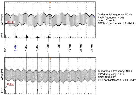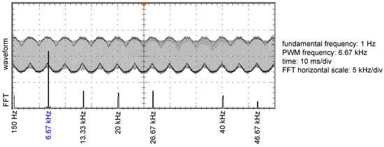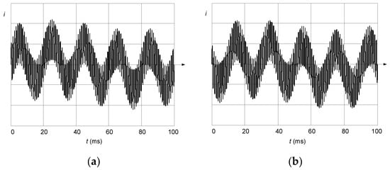 Regarding the risk of harmful effects of the electric shock, it should be commented that, according to IEC 60479-2 [28], the threshold of perception, the threshold of let-go and the threshold of ventricular fibrillation move to higher values when a high-frequency current flows. The most important is the last threshold (fibrillation effect) and it is the most-dependent on frequency. Analyzing provisions of the [25,28], it can be indicated that for the frequency equal to 400 Hz, the threshold of ventricular fibrillation is around 6 times higher than at the 50 Hz (i.e., one may assume 30 mA for 50 Hz but 6 × 30 mA = 180 mA for 400 Hz). For the frequency equal to 1000 Hz, this threshold changes 14 times (analogically: 14 × 30 mA = 420 mA). What is more, the standard [28] informs that for a mixed-frequency signal, the ventricular fibrillation hazard may be estimated (a rough approximation) as equivalent to the hazard caused by a pure sinusoidal current Iev-sin having the fundamental frequency with an amplitude equivalent to the quadratic summation of all component amplitudes Ih individually affected by the appropriate frequency factor Ffactor (e.g., Ffactor = 6 for 400 Hz and Ffactor = 14 for 1000 Hz):