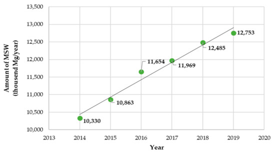 - Chen, D.M.-C.; Bodirsky, B.L.; Krueger, T.; Mishra, A.; Popp, A. The world’s growing municipal solid waste: Trends and impacts. Environ. Res. Lett. 2020, 15, 074021. [Google Scholar] [CrossRef]