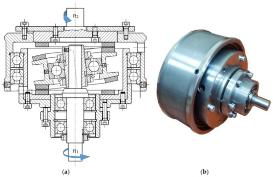 - Macyszyn, Ł.; Myszkowski, A.; Staniek, R.; Pabiszczak, S. Two-Stage Precession Type Gear: Design, Geometric and Kinematic Analysis. In Proceedings of the American Society of Mechanical Engineers Digital Collection, Tampa, FL, USA, 3–9 November 2017. [Google Scholar]