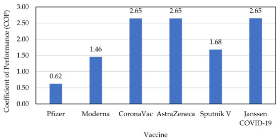 Among the various controversial issues regarding SARS-CoV-2 are the questions of vaccine availability and logistics [1]. There are several different cold storage conditions between multiple brands. In the United States of America (USA) and Europe, the first approved vaccines were Pfizer–BioNTech and Moderna [2]. In Brazil, the first vaccines approved were CoronaVac and Oxford–AstraZeneca [3]. In Argentina, the first approved vaccine was Sputnik V. The Johnson & Johnson vaccine was the last vaccine to be approved both in the USA and Europe. It is a fact that the vaccine itself to be produced goes through several unique principles of refrigeration and clean rooms. One of the characteristics of these clean rooms is the BSL-03 (Biosafety Security Level) [4], with cascades of air pressure that are essential to ensure the safety of the users. After all the work to develop and produce the vaccines, however, they face cold storage and distribution issues. Thus, assessment of the electricity consumption and the environmental impacts helps each country to make the appropriate decision about which brand of vaccine to choose. In doing so, each must consider the operational costs and environmental factors produced during their cold storage [5].