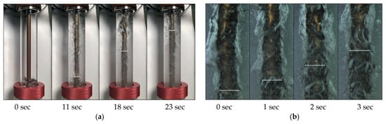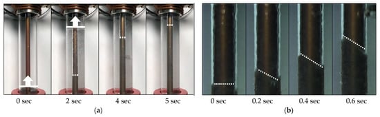 Pictures of the CrAl-coated Zr cladding quenching at Tw = 800 °C, Tsub = 5 °C and Vc = 0.05 m/s using; (a) digital camera; (b) high-speed camera.