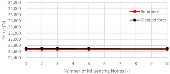 Influence of the number of influencing nodes parameter on the mapped force sum.