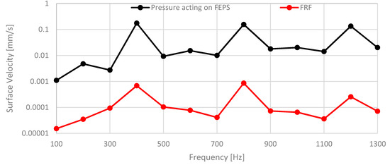 Comparison of the surface velocity magnitudes caused by FRF and pressure on FEPS.