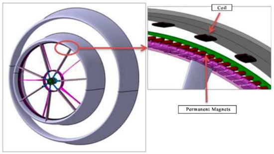 is the angular displacement along stator circumference. Considering Equation (11), Equation (10) can be expressed as: