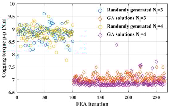 should be a trade-off between the achievable performances and the computational effort. In fact, the number of the sub-teeth is related to the quantity of the design variables affecting the complexity of the optimization problem and consequently the computational effort required by the heuristic solution. Similar considerations are done about the choice of