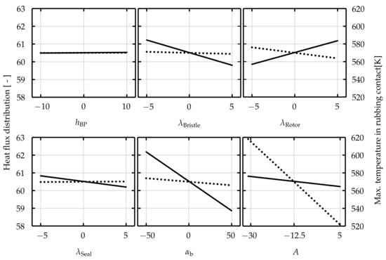 In particular, the temperature level in the friction contact has a direct effect on the mechanical and physical material properties of the sliding partners and the tribochemical reactions, such as the formation of oxide layers. The temperatures in the friction contact are determined by the level of the ambient air temperature and the heat input during the contact with the seal. These changes also indirectly affect the friction coefficient . In addition to the knowledge of the heat input in friction contact, the distribution of heat fluxes between the bristle package and the seal and, subsequently, the distribution within the bristle package are also important. In brush seals, these distributions are strongly influenced by cooling effects due to leakage. In the following, only the third factor, the heat transfer, will be discussed.