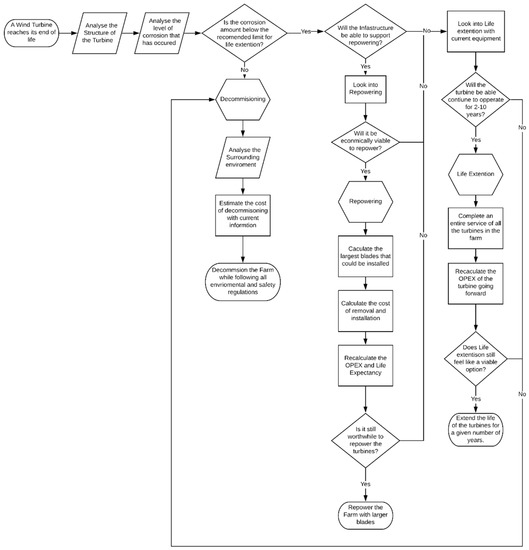 A lifetime extension assessment performed in the final years of the operating permits will determine the condition of the turbine. Some operators are meeting the issue head-on by using the Siemens offering, ‘Middle life investment’ [39]. This is a program with the aim of extending the life of 20-year farms to 30 years. This works as companies analyse turbines on a continual/regular basis. Many of the modern improvements in the operation and maintenance (O&M) is down to digital detection of possible faults in turbines, lowering the need for physical inspections.