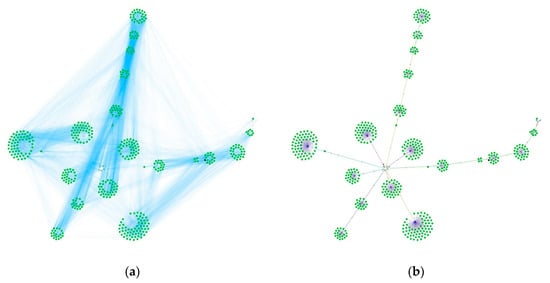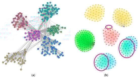Telecom communities mapped over the G3-PLC network topology (a) and over existing cartographic data related to the network’s electrical topology (b).