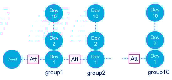 The implementation of this mechanism has been verified performing route discoveries from the coordinator to all the nodes in the scenario shown in Figure 10: 10 groups formed of approximately 10 nodes (total number of 101 nodes) considering three topologies with 0, 10 and 20 dB attenuations between each group of nodes.