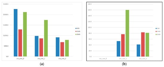 The absolute number of overwritten RREQ messages strongly depends on both network topology and routing parameters. In the 0 dB topology (blue lines), the network is more congested since all nodes are in the same collision domain, and the probability of collision between RREQs is higher. In the 20 dB topology (green lines), groups of nodes are separated in several collision domains due to the high attenuations. The 10 dB topology (red lines) corresponds to a mixed scenario, where a node of a given group can receive messages from nodes located in the closest groups. For use_case_2, low LQI and high LQI settings enable a more accurate RC computation based on realistic SNR values, which improves the forwarding decision made by each intermediate node.