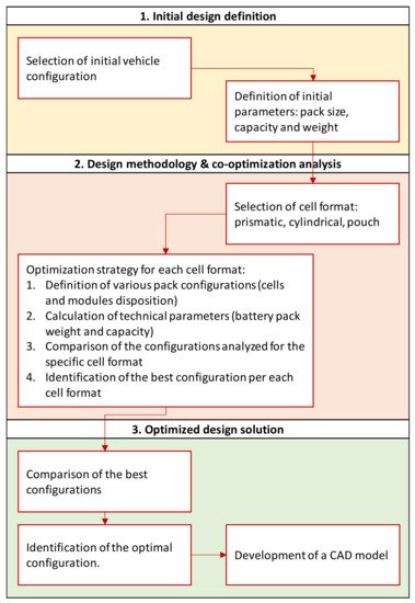 Specific optimization strategies for each cell format are developed, taking into account both cells arrangement in modules and the module disposition in the battery pack. A rectangular case is assumed as the geometry of the module. The overall battery pack weight and capacity are calculated for each proposed configuration. A discussion about the different proposed design configurations investigated in each strategy is made so as to identify the format solution and relative configuration that provide better results in terms of the capacity and weight in comparison to the original vehicle scheme.