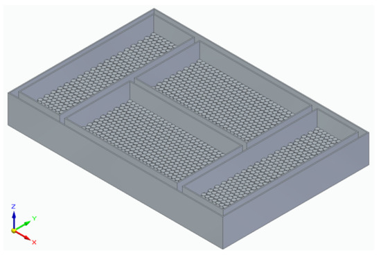 CAD model of the optimal configuration (Configuration 7 with 21700 Panasonic cylindrical cells, arranged in four modules with an offset packaging).