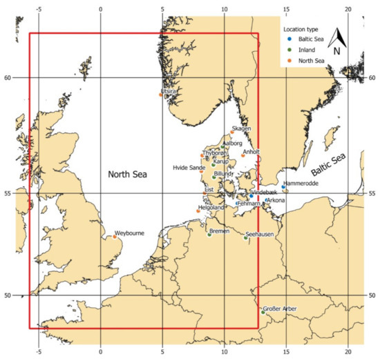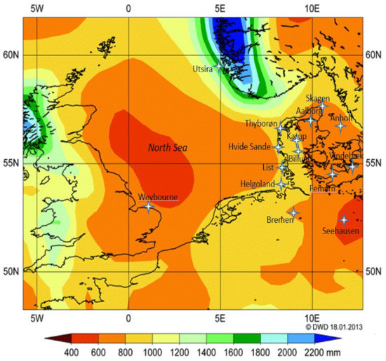 - Quante, M.; Colijn, F.; Bakker, J.P.; Härdtle, W.; Heinrich, H.; Lefebvre, C.; Nöhren, I.; Olesen, J.E.; Pohlmann, T.; Sterr, H.; et al. Introduction to the Assessment—Characteristics of the Region. In North Sea Region Climate Change Assessment, Regional Climate Studies; Quante, M., Colijn, F., Eds.; Springer: Cham, Switzerland, 2016. [Google Scholar] [CrossRef]
