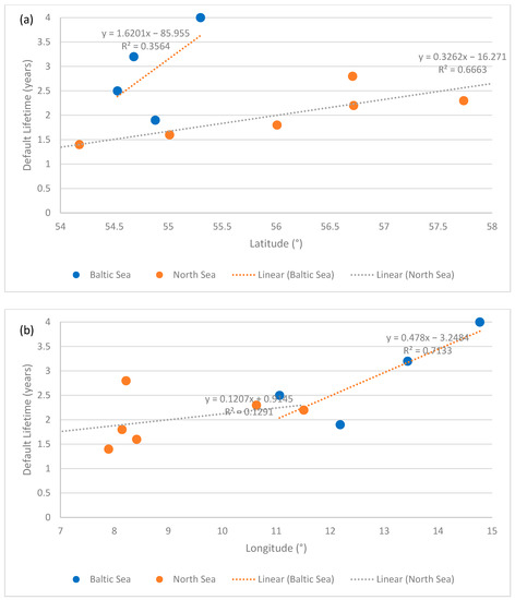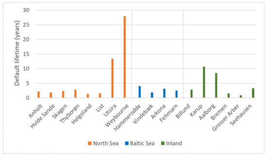 - The lifetime increases from the South to the North along the German and Danish North Sea coastline: Helgoland (1.4 years), List (1.6 years), Hvide Sande (1.8 years), and Thyborøn (2.8 years). The time series are from 18 to 23 years long.