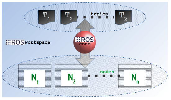 ROS programs are organized in program nodes. Each node may be a publisher or a subscriber to certain message topics. The messaging procedure is time scheduled and programmable.