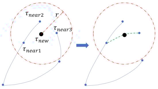 In this section, we follow the idea of RRT* [], especially the idea of rewiring, to improve the energy efficiency of the vertices in the random trees. This is necessary when Algorithm 1 fails to find a feasible tour. The body of Algorithm 2 is similar to that of Algorithm 1. The used functions are explained below.