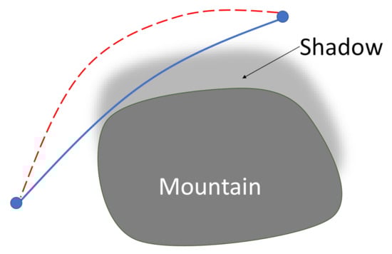 The problem considered in this paper differs from the existing ones in several aspects. Unlike the research on the energy-optimal flight of solar-powered UAVs, which assumes free-space flight at high altitudes (such as 15 km reported in []), we consider that the UAV flies in mountain regions. Not only collision avoidance but also shadow regions are considered in our work. Additionally, unlike two-boundary path planning with no-fly zones [], tracking of a moving target in urban areas [], and assisting wireless communication around a group of cellular users [], the considered problem involves multiple targets to be surveyed. Moreover, compared with the publications on TSP-based or its variant-based multi-target surveillance, where the cost between two sites is known, such a cost in our model is unknown in advance. As the considered path planning problem for a solar-powered UAV involves collision avoidance, energy consumption, energy harvesting, and missions of surveying multiple targets, it is more challenging than the problems considered in existing relevant work.
