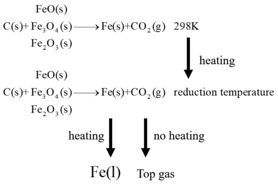 From the minimum energy consumption point of view, the ideal thermodynamic model for the reduction of iron oxide by carbon was shown in Figure 20, namely only CO2 was generated.