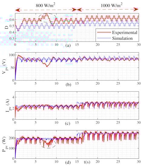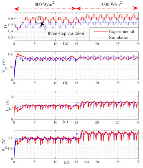 In this section, the simulation and experimental results of the system under test are presented. Also, the rightness of the research findings for other converters and perturbation based MPPT algorithms is illustrated.
