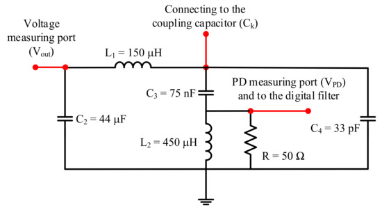 - Prombud, T.; Kitcharoen, P.; Yutthagowith, P. Development of a Low-Pass Filter for Partial Discharge Testing System with the Power Frequency Converter. In Proceedings of the Australasian Universities Power Engineering Conference (AUPEC), Auckland, New Zealand, 27–30 November 2018. [Google Scholar]