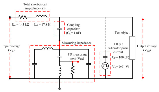 Nowadays, power electronics technology has been applied in many practical fields, such as home appliances, automotives and traction, renewable energy, and HV transmission and distribution systems. In HV generation for testing, the power electronics converter is a powerful and efficient tool for AC/DC, DC/AC, and AC/AC power conversion. However, the crucial problem of the application of the power converter in the PD test is the interference signal originating from fast switching of power electronic devices. It causes the PD detection system to have background noise much higher than the acceptable level. For example, in the PD tests of VTs insulated with oil, the acceptable PD level is only 5 pC [4,5]. Consequently, the testing system including the PD detection system should have a background noise level below 50% of the acceptable PD level (2.5 pC). Most commercial power converters have an additional filter for eliminating undesired harmonic voltage and obtaining a voltage waveform close to a pure sinusoidal wave. However, the filter cannot eliminate the interference in the PD measurement completely, leading the background noise in the PD test to be higher than the acceptable level.